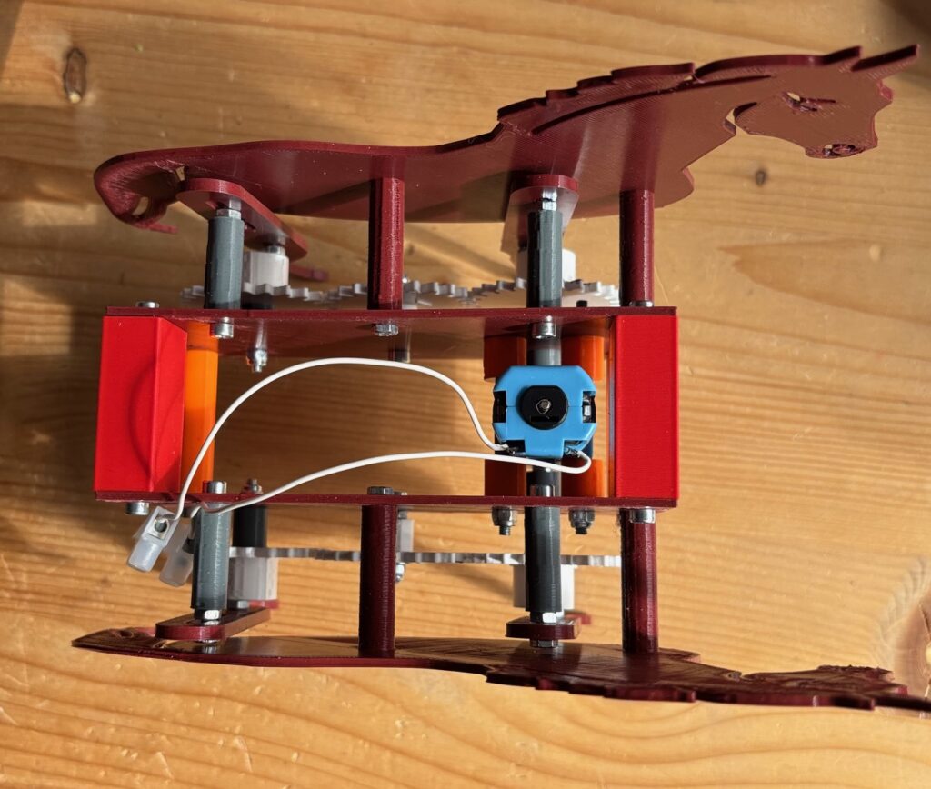 Détail de la construction (entretoises, roues dentées, etc.)